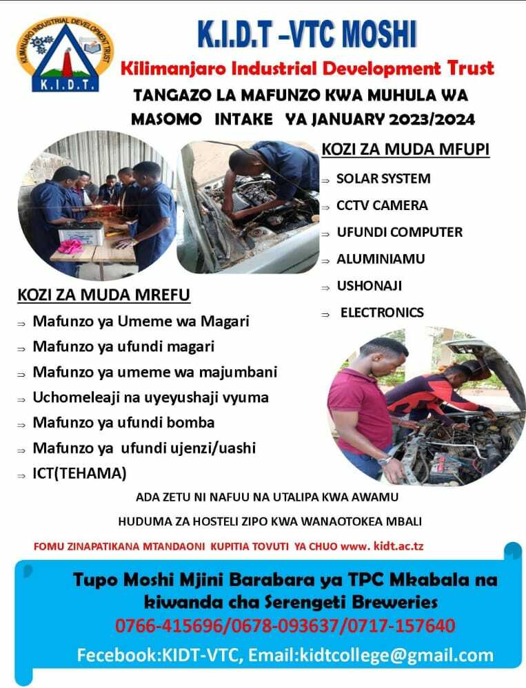 If you are looking for a college that provides a unique, flexible education, KIDT-VTC is the perfect choice! We are located in Moshi Municipal KIDT premises along Fonga get /TPC road - close to Serenegeti brewaries.